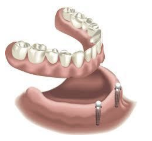 Estas prótesis removibles se fijan en 2 a 4 implantes, estratégicamente anclados en el hueso de la mandíbula. Estos implantes proporcionan más estabilidad que las prótesis tradicionales, ya que no descansan sobre la mucosa sino que están sostenidas por los implantes.